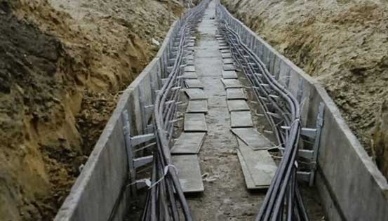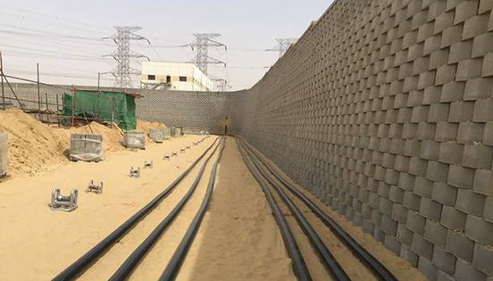 حفر وتركيب كابلات الجهد العالي (220 كيلو فولت) على مسافة 5 كم.
